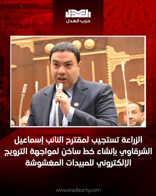 قال النائب إسماعيل الشرقاوي، عضو مجلس الشيوخ ورئيس الهيئة البرلمانية لحزب العدل بالمجلس، إن استجابة لجنة الزراعة لمقترحه بشأن إنشاء خط ساخن لمواجهة المبيدات المغشوشة، إلى جانب متابعة حاسمة لكل ما يروج إلكترونيًا لها، تمثل خطوة مهمة وجادة نحو حماية المزارع المصري وصون الأمن الغذائي الوطني.