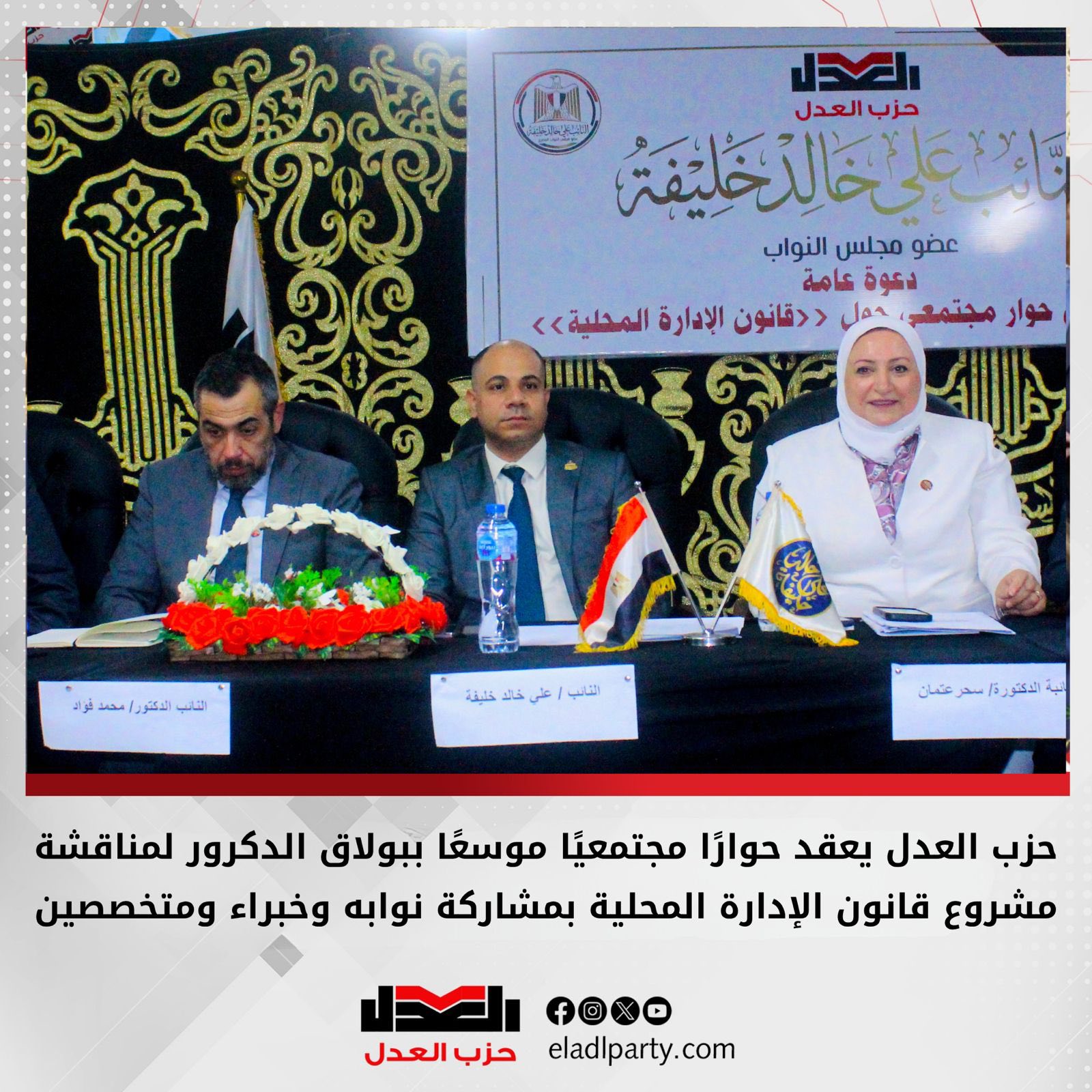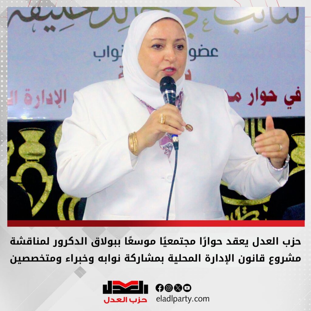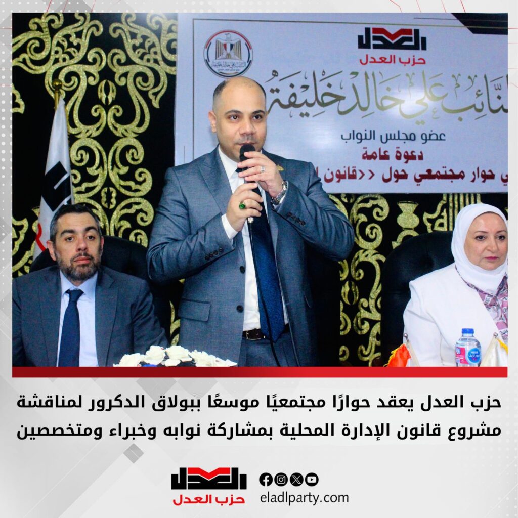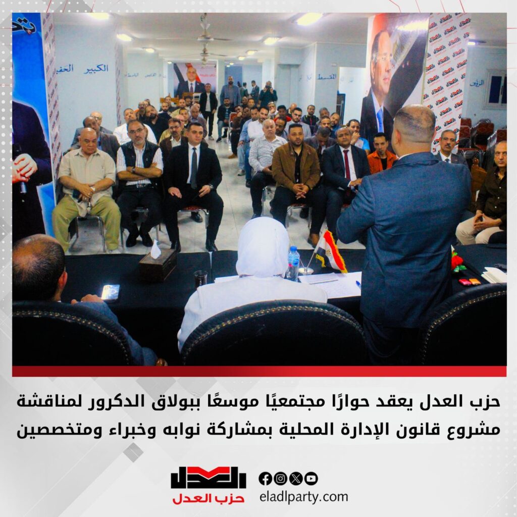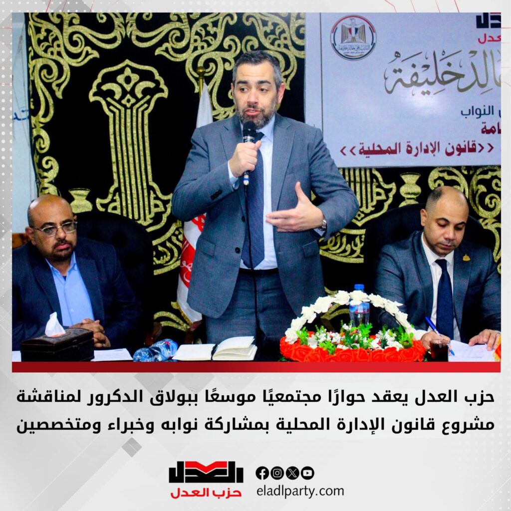 في إطار تبني نهج تشاركي في صياغة التشريعات، نظم حزب العدل لقاءً حواريًا موسعًا بدائرة بولاق الدكرور لمناقشة مشروع قانون الإدارة المحلية، وذلك بدعوة من النائب علي خالد خليفة، عضو مجلس النواب عن الحزب، وبمشاركة واسعة من القيادات التنفيذية والشعبية وأبناء الدائرة.