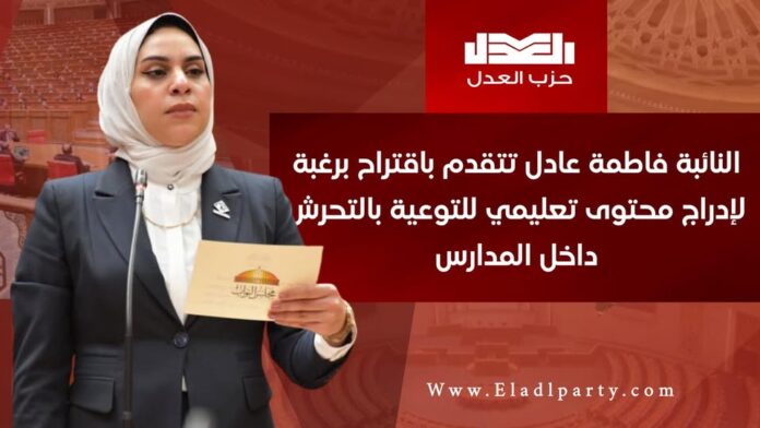 النائبة فاطمة عادل تتقدم باقتراح برغبة لإدراج محتوى تعليمي للتوعية بالتحرش داخل المدارس