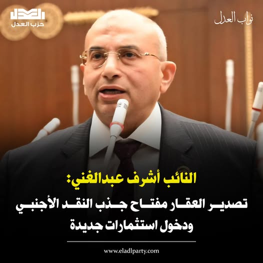 أكد النائب أشرف عبدالغني، عضو مجلس الشيوخ، عن حزب العدل، أن ملف تصدير العقار يمثل أحد أهم الروافد الاستراتيجية لدعم الاقتصاد المصري، مشيرًا إلى أن هذا الملف قادر على تحقيق عائد سنوي يصل إلى نحو 20 مليار دولار، بما يسهم بشكل مباشر في توفير النقد الأجنبي وتعزيز موارد الدولة.