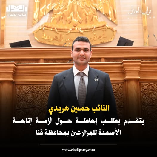 النائب حسين هريدي يتقدم بطلب إحاطة حول أزمة إتاحة الأسمدة للمزارعين بمحافظة قنا.