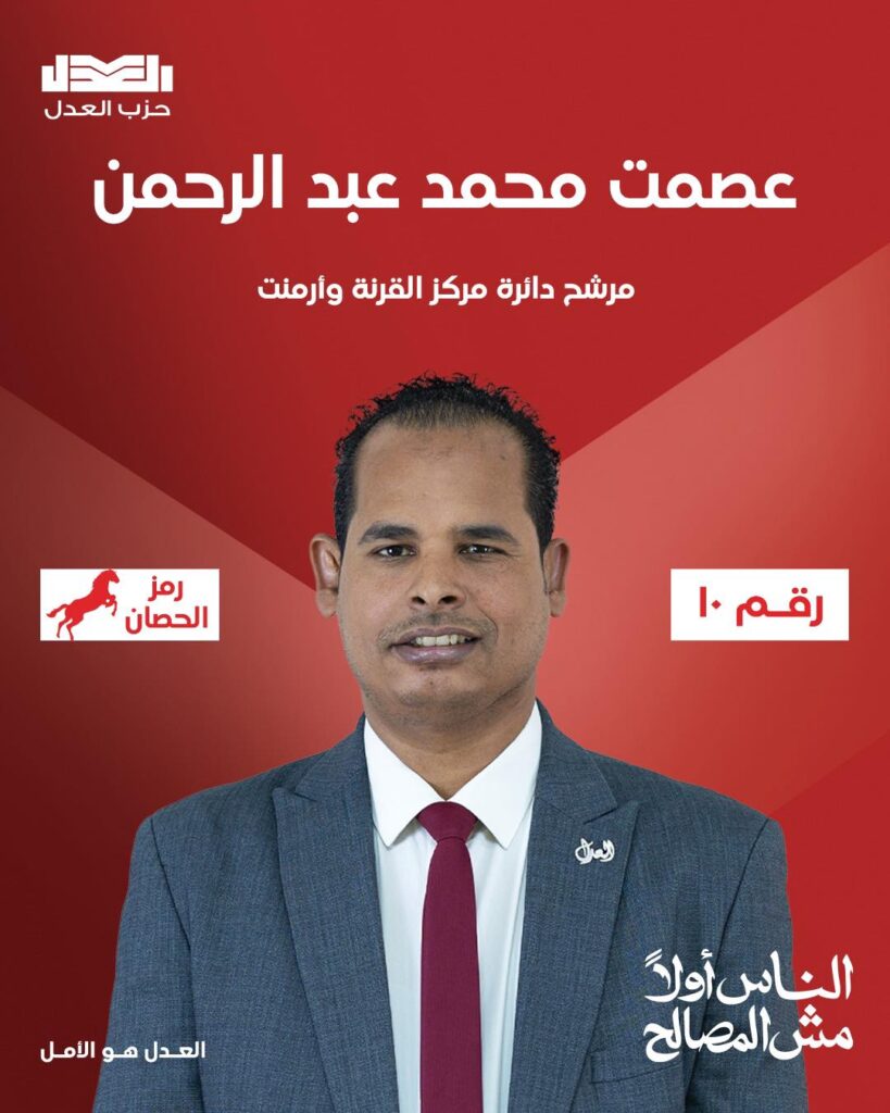 وتقدم في محافظة الاقصر المرشح عصمت محمد عبد الرحمن عن دائرة مركز القرنة وارمنت