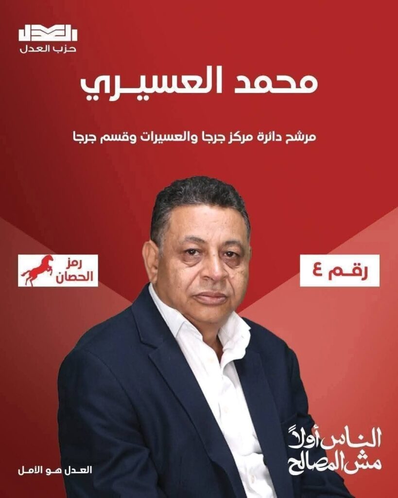 · المرشح محمد العسيري: دائرة مركز وقسم جرجا والعسيرات رقم (4 رمز الحصان)