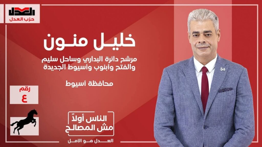 · المرشح خليل منون: دائرة البداري وساحل سليم والفتح وأبنوب وأسيوط الجديدة. (رقم 4 رمز الحصان)