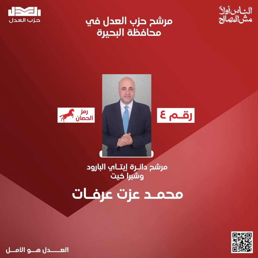 · المرشح محمد عزت عرفات: دائرة إيتاي البارود وشبراخيت (رقم 4 رمز الحصان)