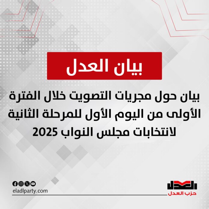 بيان حول مجريات التصويت خلال الفترة الأولى من اليوم الأول للمرحلة الثانية لانتخابات مجلس النواب 2025