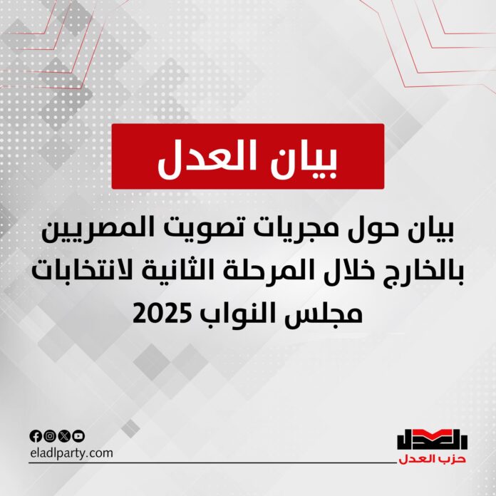 تابع حزب العدل على مدار يومين مجريات تصويت المصريين في الخارج ضمن انتخابات المرحلة الثانية لمجلس النواب، والتي تضمن 13 محافظة.