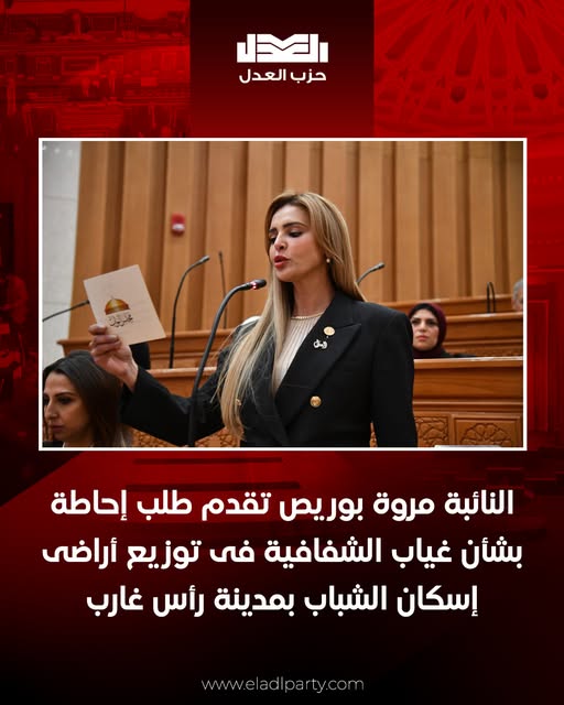 تقدمت النائبة “مروة بوريص” عضو مجلس النواب عن حزب العدل، بطلب إحاطة موجه للسيدة وزيرة التنمية المحلية، بشأن ما يشهده ملف توزيع أراضى الجمعيات وأراضى إسكان الشباب بمدينة رأس غارب، محافظة البحر الأحمر من غموض وعدم وضوح، وهو ما تسبب في حالة استياء واسعة بين المواطنين، خاصة فئة الشباب.وجاء طلب الإحاطة بعد ورود شكاوى متكررة بسبب: