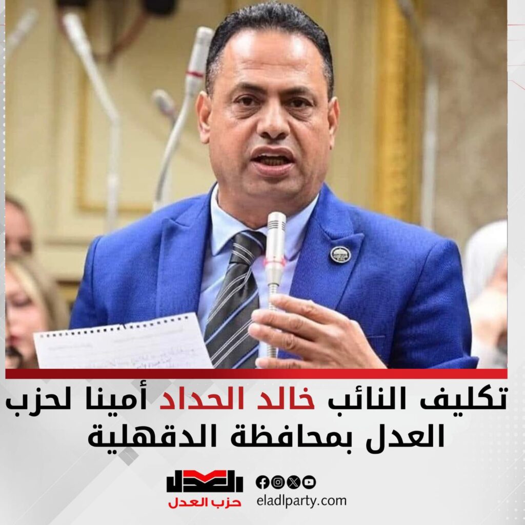 أعلن المهندس أحمد القناوي الأمين العام لحزب العدل عن تكليف النائب خالد الحداد عضو مجلس النواب عن دائرة منية النصر والجمالية أميناً للحزب في محافظة الدقهلية.