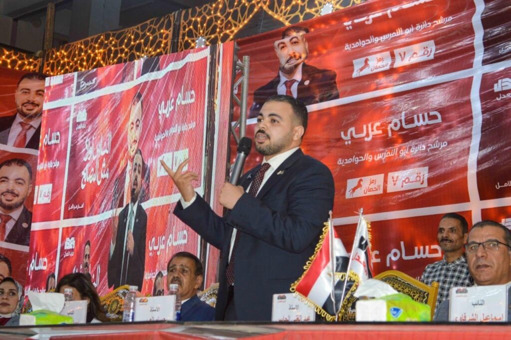 عقد حزب العدل مؤتمراً جماهيرياً حاشداً بمنطقة شبرمنت لدعم مرشح الحزب حسام العربي، رمز الحصان رقم ٧، عن دائرة أبو النمرس والحوامدية بمحافظة الجيزة، وسط حضور جماهيري كبير من أبناء الدائرة.