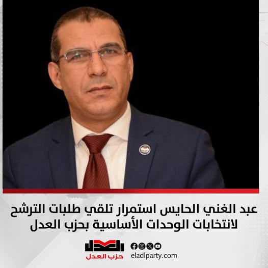 عبد الغني الحايس استمرار تلقي طلبات الترشح لانتخابات الوحدات الأساسية بحزب العدل