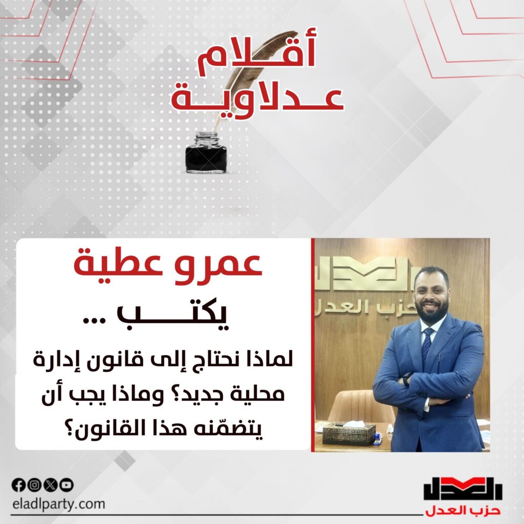 إن إصدار قانون جديد للإدارة المحلية لم يعد مجرد خطوة تشريعية، بل ضرورة أساسية لضمان تحسين مستوى الخدمات العامة وتعزيز كفاءة الأجهزة المحلية في الاستجابة لاحتياجات المواطنين. وفي حزب العدل كانت — ولا تزال — من أولوياتنا رفع جودة الخدمات وتفعيل الرقابة الشعبية، إيمانًا بأن المشاركة المجتمعية والشفافية هما الأساس الحقيقي لبناء إدارة محلية فعّالة ومتنمية.