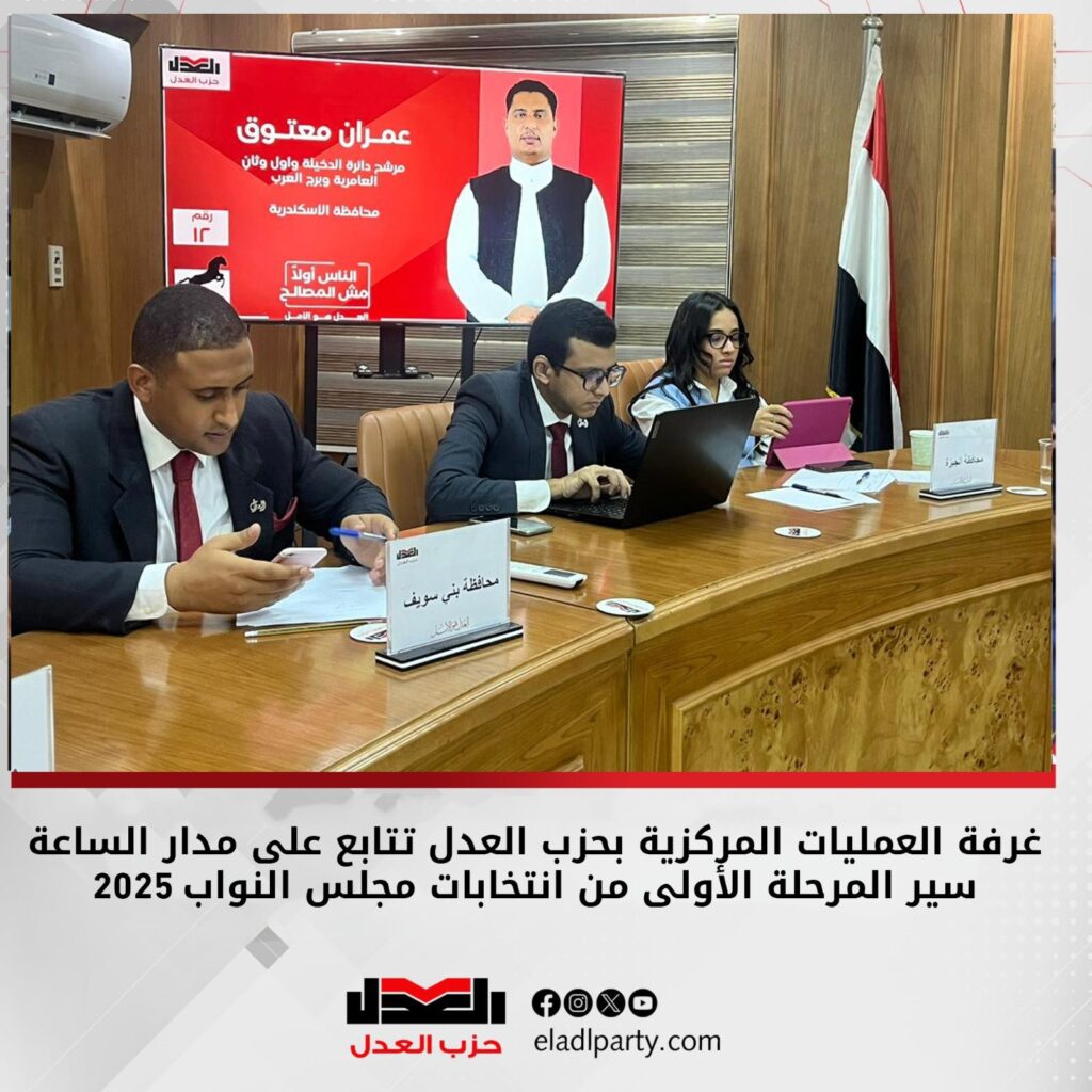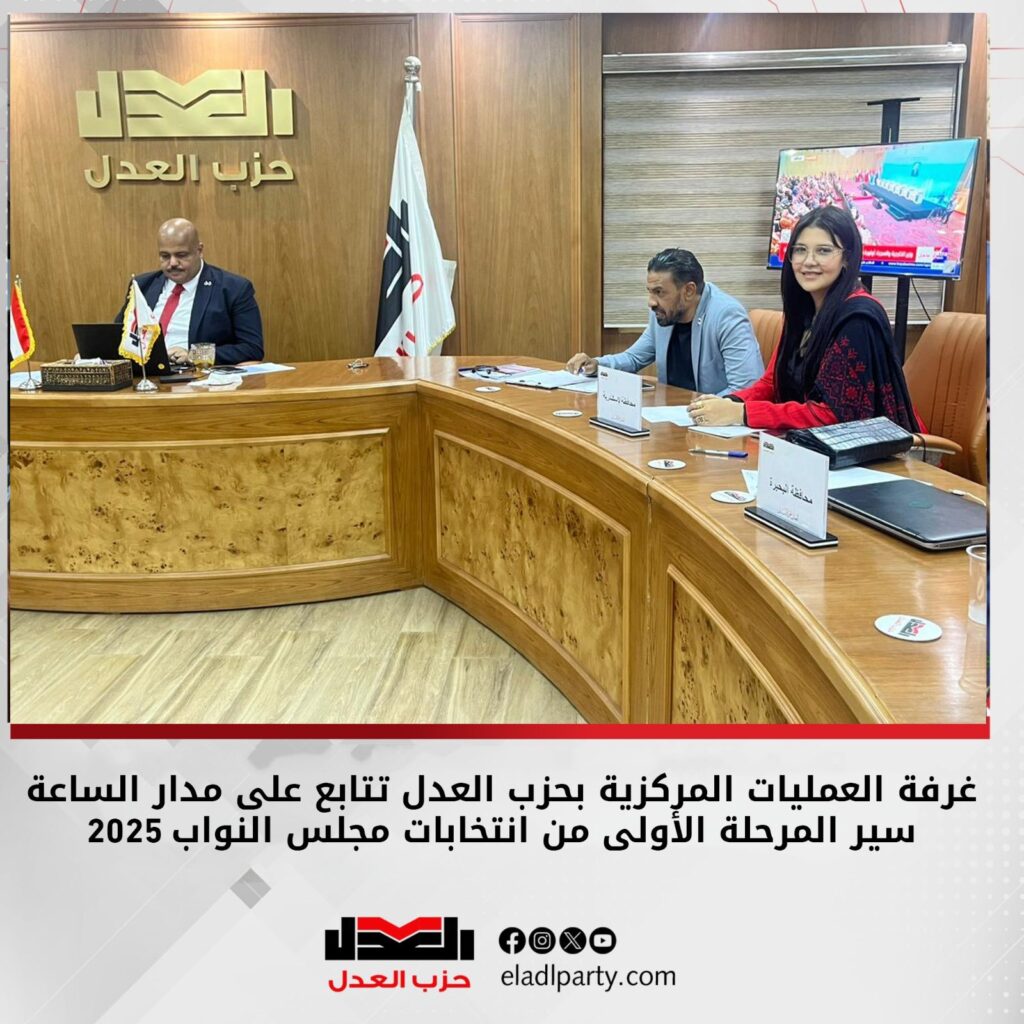 وأكد علي أبو حميد مدير الحملة الانتخابية المركزية لحزب العدل ان عملية المتابعة تتم من المقر الرئيسي للحزب في القاهرة بالتنسيق مع غرف العمليات في الأمانات بالمحافظات، بما يتيح رصد الموقف أولًا بأول والتعامل مع أي ملاحظات ميدانية فورًا