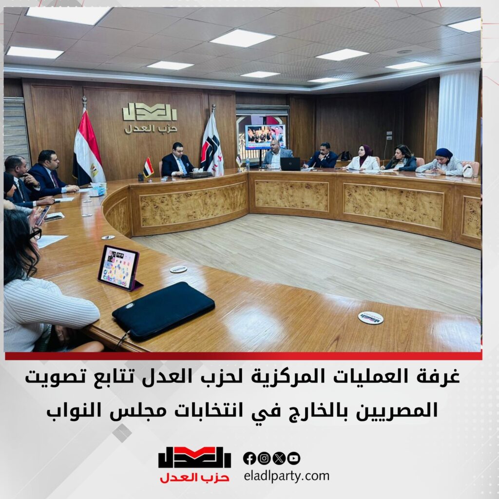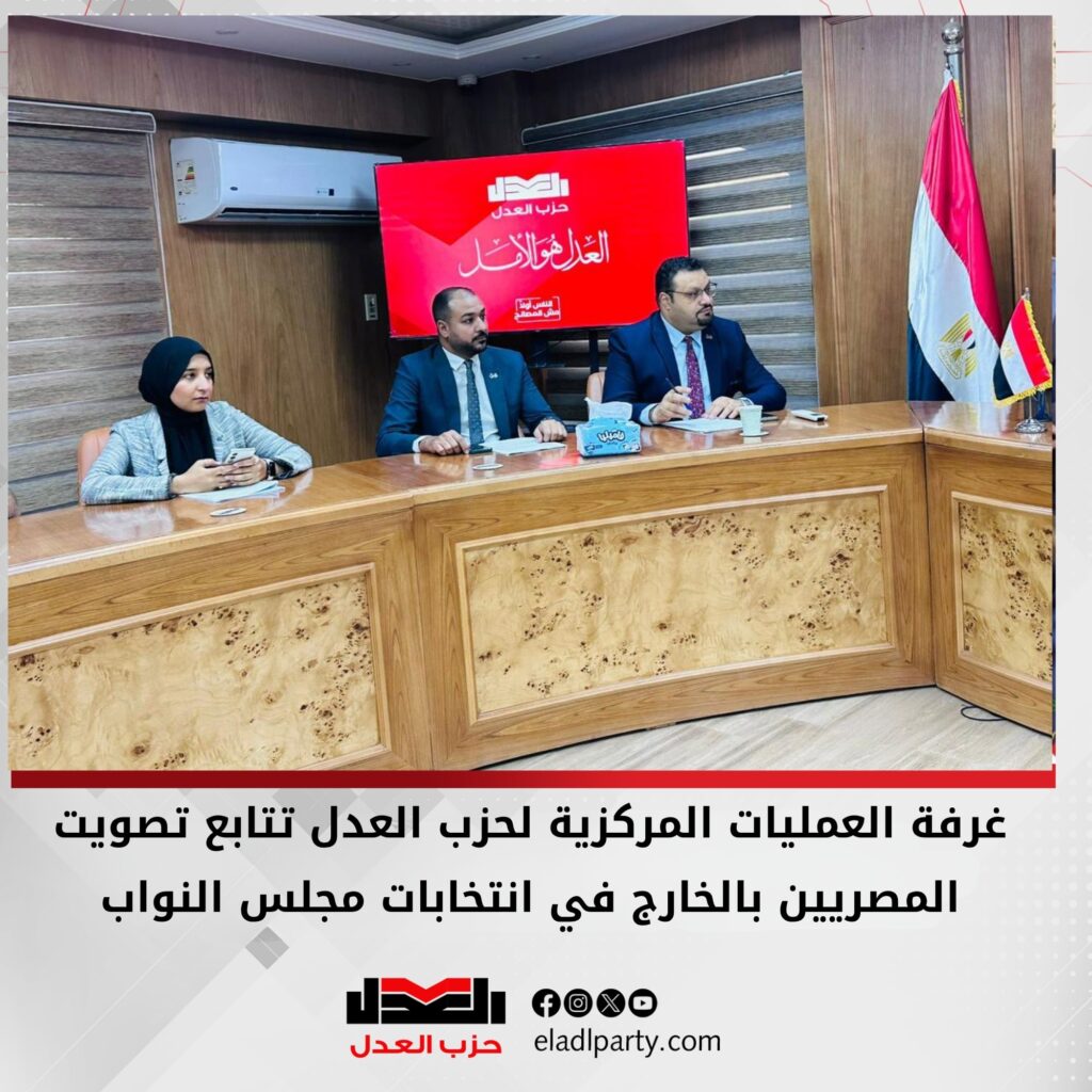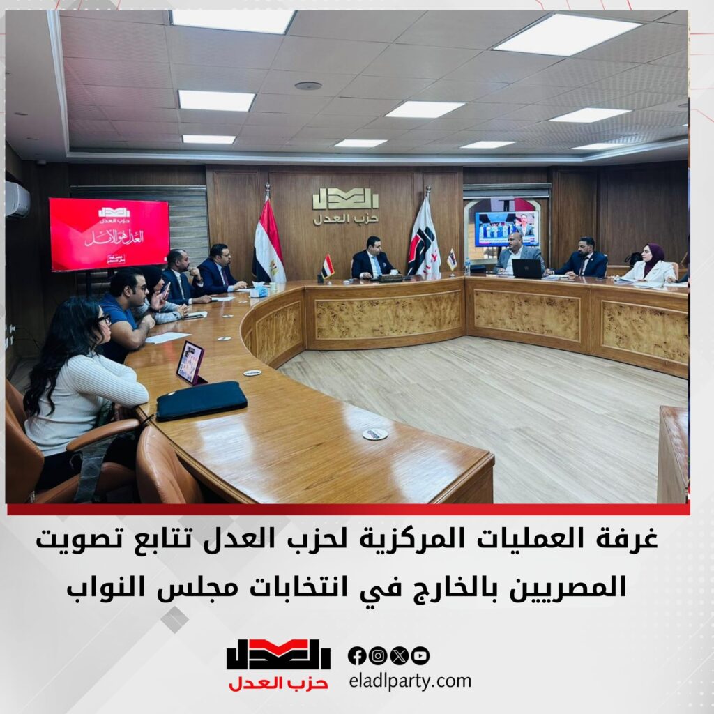 تواصل غرفة عمليات حزب العدل انعقادها لمتابعة التطورات المستمرة لتصويت المصريين بالخارج، وذلك بحضور النائب عبد المنعم إمام رئيس الحزب والنائبة ايفا فارس عضو مجلس الشيوخ، واحمد القناوي أمين عام الحزب ، وعلي ابو حميد مدير الحملة الانتخابية المركزية بالحزب وعددا من فريق الحملة