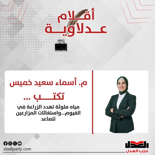 الرئيسيةمقالات العدلم. أسماء سعيد خميس مياه ري ملوثة تهدد الزراعة في الفيوم… واستغاثات...