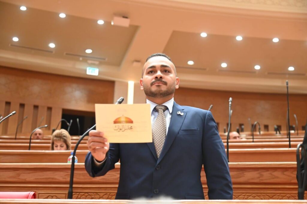 الرئيسيةالنشاط البرلمانينواب حزب العدل أثناء حلف اليمين الدستورية تحت قبة البرلمان المصري النشاط البرلماني نواب حزب العدل أثناء حلف اليمين الدستورية تحت قبة البرلمان المصري شارك FacebookTwitterWhatsAppمطبعةCopy URL #نواب_العدل#حزب_العدل#نواب_الأمل المادة السابقةحزب العدل يطلق دورة “إعداد الكادر السياسي” لأمانات القاهرة والجيزةالمقالة القادمةأسماء خميس تكتب: إلى أين تمضي كليات الزراعة في مصر؟ مقالات ذات صلة النشاط البرلماني سحر عتمان، نائبة دائرة بلبيس ومشتول السوق مرشحة حزب العدل لمنصب “وكيل البرلمان المصري”. يناير 12, 2026 النشاط البرلماني العدل يعلن رفضه مشروع تعديل قانون الضريبة العقارية أمام مجلس الشيوخ يناير 6, 2026 النشاط البرلماني برلمانية العدل ترفض تعديلات قانون الكهرباء : العقوبات تُحمل المواطن البسيط أعباء غير عادله ديسمبر 22, 2025 Tagsالبرلمانعبد المنعمعبد المنعم اماممجلس الشيوخمصرنواب حزب العدل أثناء حلف اليمين الدستورية تحت قبة البرلمان المصري شارك FacebookTwitterWhatsAppمطبعةCopy URL الأكثر شهرة محمد عطيه: زيادة معاش المهندسين ٢٥٠ جنيها فقط ليست مرضية ويجب أن يتم تسريع وتيرة استغلال موارد وأصول النقابة مارس 2, 2024 بعد زيادتها.. تعرف على أسعار شرائح الكهرباء الجديده #انفوجراف_العدل #حزب_العدل #صوت_الطبقة_المتوسطة #العدل_هو_الأمل أغسطس 22, 2024 حذار من استفزاز الفيل سبتمبر 17, 2023 بعد انضمامه لعضوية المكتب السياسي لحزب العدل نبذة عامة عن الخبير الاقتصادي الدكتور محمد فؤاد أغسطس 17, 2024 تحميل أكثر