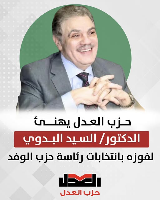 الرئيسيةرأي العدليتقدم حزب العدل بخالص التهانى إلى الدكتور السيد البدوي، بمناسبة كسب ثقة... رأي العدل يتقدم حزب العدل بخالص التهانى إلى الدكتور السيد البدوي، بمناسبة كسب ثقة أعضاء الجمعية العمومية وفوزه برئاسة حزب الوفد. شارك FacebookTwitterWhatsAppمطبعةCopy URL نتمنى كل التوفيق والسداد لما فيه خير الوطن ورفعة بيت الأمة #حزب_العدل#العدل_هو_الأمل#صوت_الطبقة_المتوسطة المادة السابقةد. مصطفى عباس يكتب: لماذا قررت عدم المشاركة في دافوس؟المقالة القادمةقيادي شبابي جديد ينضم لحزب العدل محمد طلعت علوان يعزز صفوف الحزب في الشرقية مقالات ذات صلة رأي العدل قيادي شبابي جديد ينضم لحزب العدل محمد طلعت علوان يعزز صفوف الحزب في الشرقية فبراير 1, 2026 رأي العدل حسام عيد: الفيدرالي يتجه إلى خفض محدود للفائدة.. والتضخم هو العامل الحاسم ديسمبر 11, 2025 رأي العدل انضمام محمد رضوان إلى حزب العدل ديسمبر 10, 2025 Tagsالبرلمانبيانحزب العدلعبد المنعم اماممصريتقدم حزب العدل بخالص التهانى إلى الدكتور السيد البدوي، بمناسبة كسب ثقة أعضاء الجمعية العمومية وفوزه برئاسة حزب الوفد. شارك FacebookTwitterWhatsAppمطبعةCopy URL الأكثر شهرة محمد عطيه: زيادة معاش المهندسين ٢٥٠ جنيها فقط ليست مرضية ويجب أن يتم تسريع وتيرة استغلال موارد وأصول النقابة مارس 2, 2024 بعد زيادتها.. تعرف على أسعار شرائح الكهرباء الجديده #انفوجراف_العدل #حزب_العدل #صوت_الطبقة_المتوسطة #العدل_هو_الأمل أغسطس 22, 2024 بعد انضمامه لعضوية المكتب السياسي لحزب العدل نبذة عامة عن الخبير الاقتصادي الدكتور محمد فؤاد أغسطس 17, 2024 حذار من استفزاز الفيل سبتمبر 17, 2023 تحميل أكثر